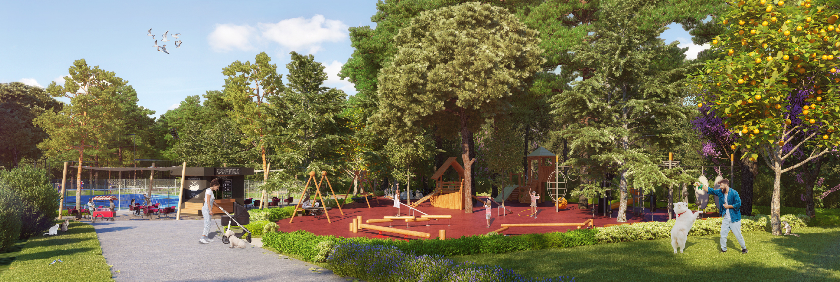 Projede yürüyüş yolları, sıradan bir güzergâhtan çok daha fazlasını vadediyor. Geniş peyzaj alanlarıyla çevrelenmiş bu yollar, sabah yürüyüşleri ya da akşam üstü keyifli bir gezinti için özel olarak planlandı. Doğal dokuya uyumlu zemin kaplamaları, güneşten korunmak için yerleştirilen gölgelikler ve yönlendirme tabelaları sayesinde bu yollar hem işlevsel hem de kullanıcı dostu bir hale getirildi. Aynı şekilde bisiklet tutkunları da unutulmadı. Aracınızı kullanmadan, çevredeki alanlara ulaşabileceğiniz bisiklet yolları; sürdürülebilir ulaşımı desteklerken, aktif yaşam tarzını da teşvik ediyor. Gerek çocuklar gerek yetişkinler için bisiklete binmek, bu projede yalnızca bir spor değil, günlük yaşamın doğal bir parçası haline geliyor.